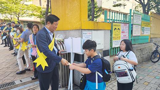 광주자치경찰위원회는 광산경찰서, 광산구청, 녹색어머니회 등과 함께 7일 광산구 고실초등학교에서 ‘어린이 교통안전 캠페인’을 실시했다.