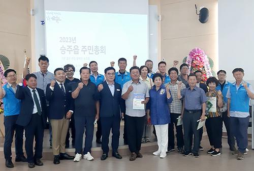 순천시 승주읍 주민자치회는 지난 11일 순천시미생물센터 친환경교육관에서 주민 100여 명이 참석한 가운데 ‘기분 좋은 변화 행복한 승주!’라는 슬로건으로 열린 ‘2023년 승주읍 주민총회’를 성공적으로 마쳤다.