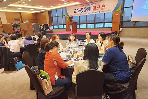 워크숍은 ▲다문화평화교육연구소장 박흥순 소장의 ‘다문화사회를 맞이하여 바람직한 교육의 방향’ 연수 ▲한국교육개발원 윤현희 연구원의 ‘이주민 밀집지역 소재 학교 연구’ 안내 ▲광산구 교육국제화특구 소개 ▲교장, 교사, 학부모, 학생 교육공동체들의 교육활동에 대한 의견나눔 순으로 진행됐다.