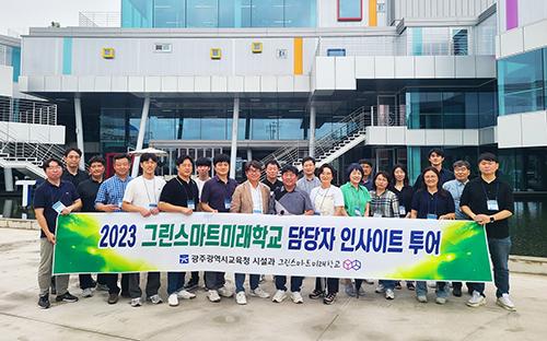 광주시교육청이 지난 15일 본청 및 동·서부교육지원청 시설 관련 부서, 그린스마트스쿨 사업 대상 학교장 및 행정실장, 교사 등 약 30명이 참여한 가운데 ‘그린스마트스쿨 담당자 인사이트 투어’를 진행했다.