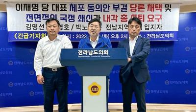 김명선 민주당 정책위 부의장과 박노원 민주당 부대변인, 최영호 전 광주 남구청장은 이날 오후 전남도의회 브리핑룸에서 기자회견을 갖고 이 같이 밝혔다.