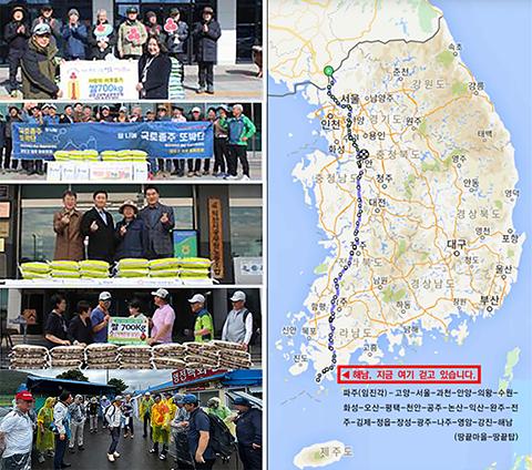 광주 금호고등학교 동문들이 700㎞를 걷고 7t의 쌀을 기부하는 국토 종단 대장정을 마무리했다.