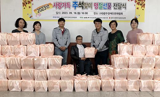 기아 AutoLand광주는 파트장협의회가 지난 18일 민족 대명절인 추석을 앞두고 어려움을 겪고 있는 지역사회 이웃들을 돕기 위한 후원물품을 전달했다고 19일 밝혔다.