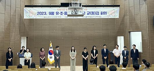 순천교육지원청은 지난 19일 전남도립미술관 대강의실에서 관내 유·초·중·고·특수학교 교(원)감 86명을 대상으로 ‘미래역량 중심 교육력 제고를 위한 \'2023 9월 교(원)감 회의’를 개최했다.