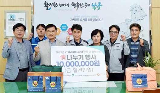 이날 오후 2시 광주시 남구청 부구청장실에서 진행된 후원행사에는 김순옥 광주광역시 남구부구청장과 김영기 광주광역시사회복지협의회 회장, 그리고 기아 AutoLand 광주 서성철 총무팀장이 참석해 지역사회에 명절의 정을 전했다.