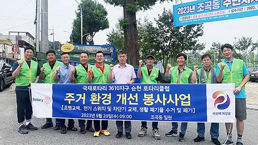 순천로타리클럽은 다가오는 추석 명절을 앞두고 조곡동 주거취약계층을 대상으로 LED전등을 교체하고, 방치된 대형폐기물을 처리하는 주거환경개선 봉사활동을 펼쳤다고 24일 밝혔다.