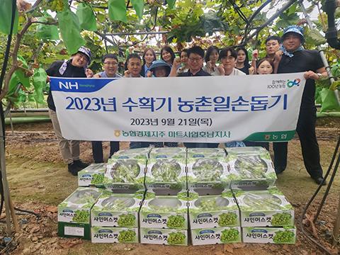 농협경제지주 마트사업호남지사는 최근 광주시 광산구 도덕마을 일대 포도농장에서 수확기 농촌일손돕기 봉사활동을 했다고 25일 밝혔다.