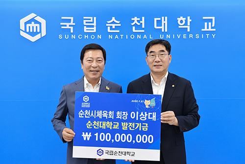 순천대학교는 순천시체육회 이상대 회장이 글로컬대학 30 성공을 기원하며 발전기금 2000만원을 기탁했다고 4일 밝혔다.