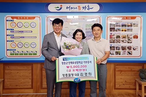 (재)장흥군인재육성장학회는 지난 9월 27일 김경희 장흥철망 대표가 500만원의 장학금을 기부했다고 밝혔다.