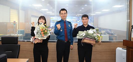 이날 경찰관 2명에게 경찰서장 표창장과 소방관 1명, CCTV관제요원 2명, 자율방범대원 1명에게 경찰서장 감사장을 수여했다.