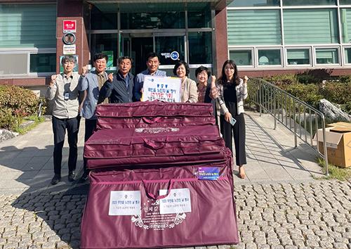 LG전자 무안판매장 박성옥 대표가 무안읍 노인의 날 행사를 앞두고 어르신들에게 전달해 달라며 온열매트 10개를 무안읍노인회분회에 기탁했다.