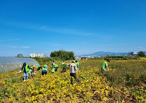 광주시인재교육원 중견간부리더과정 교육생 59명은 12일 가을 추수철을 맞아 광산구 평동일원 농촌현장을 방문해 농촌 일손돕기활동을 실시했다.