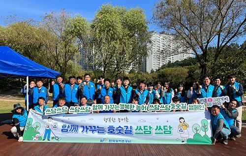 나주발전시민연대와 한국농어촌공사 나주지사는 12일 나주 대호수변공원에서 \'행복한 농어촌, 함께 가꾸는 호숫길 쓰담 쓰담\' 공동 캠페인을 펼쳤다.