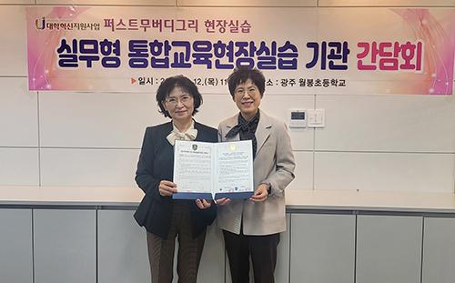현재 1개 특수학급에서 특수교육대상학생 9명이 교육받고 있는 월봉초는 남부대와 가까이 위치해, 이전에도 초등특수 예비교사들의 실습 장소로 활용돼왔다. 이번 협약 체결로 양 기관 간의 더욱 체계적인 통합교육 협력 체계가 구축될 것으로 기대된다.
