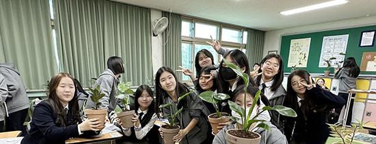 ‘그린 클래스 만들기’는 학생들이 학급 내에서 식물을 직접 키우며 관찰하는 반려 식물 프로그램이다. 이날 학생들은 3개월간 직접 키운 식물들을 선보이며 탄소 중립를 향한 실천 의지를 다졌다.