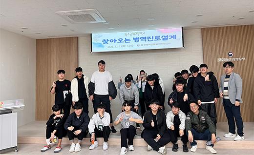 광주전남지방병무청은 25일 병역진로설계지원센터에서 광주공업고등학교 학생들과 함께하는 \'병역진로설계 체험 행사\'를 실시했다.