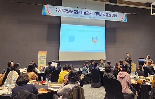 동부교육지원청에 따르면 ’다독다독 몸과 마음‘이라는 주제로 진행된 이번 캠프는 교육활동 침해 및 교직 스트레스로 지친 교원들에게 소통과 공감 그리고 자기 돌봄의 시간을 제공하기 위해 마련됐다.