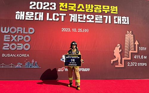 광주 광산소방서는 지난 25일 부산 해운대 LCT 랜드마크동에서 열린 \'해운대 LCT 계단오르기 대회\'에서 자서 소속 정은화 소방관이 경쟁부문 1등을 기록했다고 29일 밝혔다.