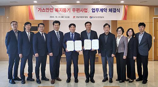 전남우정청은 31일 한국가스안전공사와 섬 지역 LP가스 시설 모니터링 강화를 위한 \'가스안전 복지등기 우편 서비스\' 업무 계약을 맺었다.