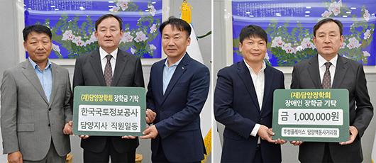 담양군은 투썸플레이스 담양백동사거리점과 한국국토정보공사 담양지사에서 각 100만 원을 장학금으로 기탁했다고 1일 밝혔다.