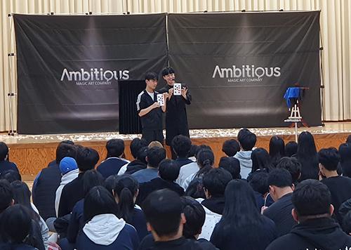 이번 특강에 초빙된 국가대표 지혜준 마술사는 다양한 마술을 통해 학생들에게 꿈과 진로에 대한 메시지를 전달했다. 자신이 마술사를 선택한 이유를 옴니버스 형태로 스토리텔링하는 카드 마술 ‘드리밍매직’, 아무것도 없는 화분에 꽃을 피우고, 물체가 저절로 하늘을 날게 하는 등 현실에서 불가능한 현상을 마술로 보여주는 마술 ‘더 미라클’을 보며 학생들은 꿈에 대한 자신감을 얻어갔다.