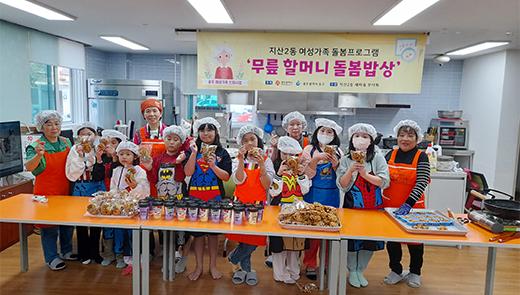 광주 동구지산2동 새마을부녀회는 마을사랑채에서 ‘여성 가족 친화 마을 만들기 사업’ 일환으로 지역 아동들과 함께하는 ‘무릎 할머니 돌봄 밥상’을 진행했다고 밝혔다.