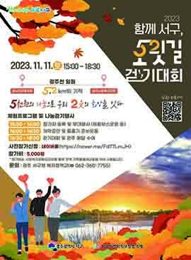 서구는 주민의 관심과 ‘발걸음’으로 가족돌봄청년에게 희망을 주고 행복한 삶을 지원하기 위해 ‘함께 서구, 오~! 잇길 걷기대회’를 오는 11일 오후 3시 광주천 일대에서 개최한다.