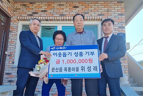장흥군 관산읍은 위성래(옥동마을) 씨가 지난 8일 어려운 이웃을 위해 사용해 달라며 성금 100만원을 기부했다고 밝혔다.