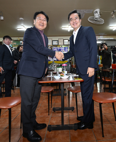 김 도지사와 강 시장이 이날 오전 조찬 회동을 한 장소는 고 노무현 전 대통령이 찾았던 음식점이다.