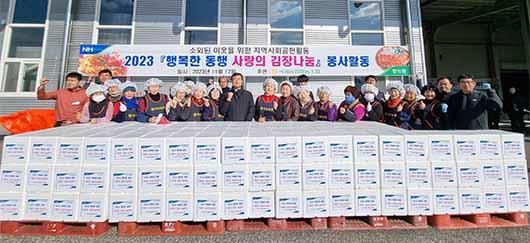 곡성농협은 침체된 사회기부 문화속에 지역사회나눔활동 확산 및 우리농산물(배추, 고춧가루등) 소비촉진을 통한 농가소득증대 기여를 위해 지난 17일 곡성농협농산물산지유통센터에서 \'행복한동행 사랑의 김장나눔 봉사활동\'을 실시했다.