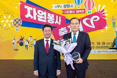 광양제철소가 ‘감동시대 따뜻한 광양’을 만들어가는 데 일조한 자원봉사자들을 격려하기 위해 마련된 ‘제9회 광양시 자원봉사 축제’에서 광양시장으로부터 감사패를 수상했다.