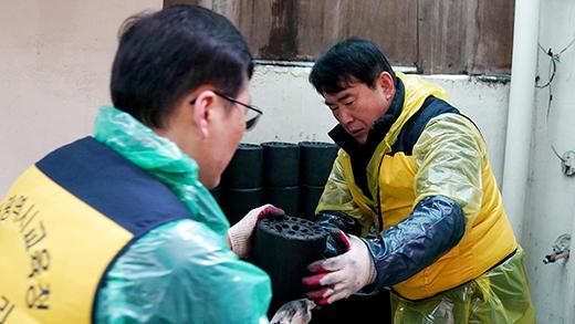 광주시교육청 봉사동호회가 지난 18일 서구 광천동 일대 독거노인 등 10세대에 세대 당 연탄 300장씩 3000장을 구입·배달했다고 밝혔다. /광주시교육청 제공