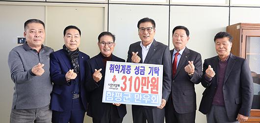 22일 전남 함평군은 “함평군 만우회가 지난 21일 저소득 취약계층을 위해 현금 310만원을 기탁했다”고 밝혔다.