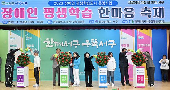 광주시 서구는 지난 25일 서구청에서 ‘학습공동체로 하나되는 우리’라는 주제로 17개 장애인평생교육기관 교육생 300여 명이 참석한 가운데 ‘장애인 평생학습 한마음 축제’를 개최했다.