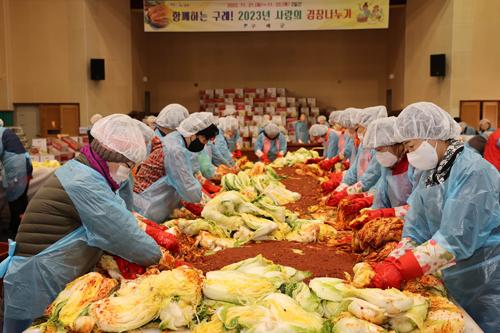 구례군은 11월 21일부터 3일간 용방면 지용관에서 사랑과 정성이 담긴 김장 김치를 직접 담가 관내 어려운 이웃들에게 전달하는 2023년 사랑의 김장 나누기 행사를 열었다고 밝혔다.