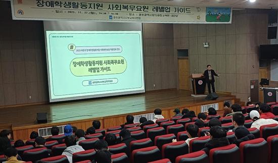 광주서부교육지원청이 지난 27일 광주창의융합교육원 대강당에서 2023학년도 하반기 장애학생활동지원 사회복무요원 역량강화 연수를 실시했다.