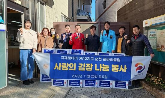 순천시는 국제로타리3610지구 순천로타리클럽에서 동절기를 맞아 사랑의 김장 김치 나눔 행사를 가졌다고 밝혔다.