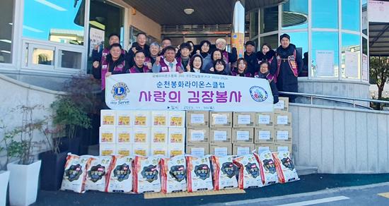 순천시 매곡동은 순천봉화라이온스클럽에서 겨울철 어려운 소외계층을 위해 매곡동 행정복지센터를 방문해 김장 김치 15박스, 라면 16박스, 쌀 20㎏ 10포(180만 원 상당)를 후원했다고 3일 밝혔다.