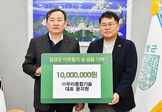 담양군에 따르면, 담양 여성 라이온스(회장 나현미)와 임업후계자협의회(회장 배정수)에서 현금 각 100만 원, ㈜우리종합기술(대표 윤지현)에서 현금 1000만 원, (사)전국한우협회 담양군지부(대표 박현주)에서 한우(250만 원 상당)를 기탁했다.
