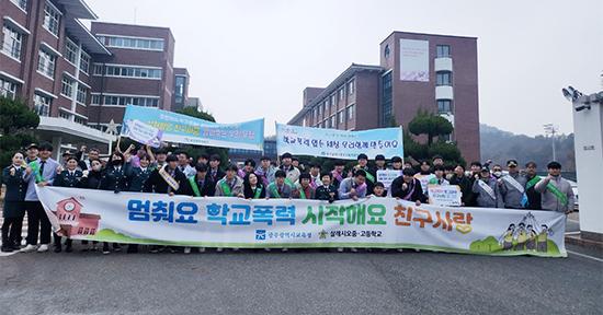 광주동부교육지원청이 지난 6일 지역사회 학교폭력 지자체 및 유관기관과 같이 살리시오 중·고등학교에서 ‘찾아가는 학교폭력 예방 캠페인’을 실시했다.