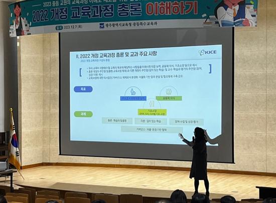 광주시교육청이 지난 7일 중등 교원 및 교육전문직원 250여 명이 참석한 가운데 ‘2022 개정 교육과정 총론 이해하기’를 주제로 연수를 진행했다.