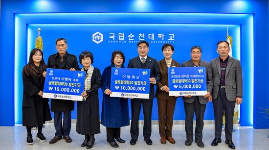 국립 순천대학교는 제10대 이병운 총장 가족이 대학 발전기금 2500만 원을 기탁했다고 10일 밝혔다.