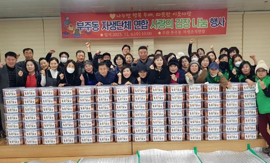 목포시 부주동 주민자치위원회 및 자생단체가 지난 6일 어려운 이웃에 대한 따뜻한 나눔을 실천하고자 ‘2023 사랑의 김장 나눔 행사’를 가졌다.