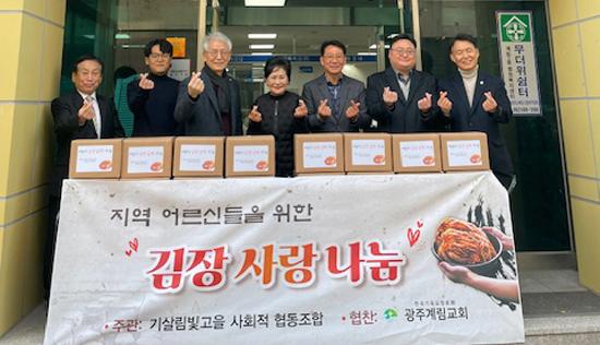 광주 동구 계림1동은 광주계림교회로부터 김장 김치(5㎏) 50상자를 후원받아 돌봄 어르신 가정에 전달하는 사랑 나눔을 펼쳤다고 밝혔다.