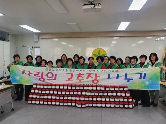 재료를 준비해 정성껏 고추장을 담갔으며, 취약계층 가구에 따뜻한 마음을 전하고자 시에 고추장 40통을 전달했다.