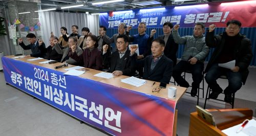광주지역사회가 제22대 국회의원 선거에 앞서 민주·진보 세력 단결을 촉구하는 동시에 더불어민주당을 향해 선거법 개악 중단과 호남 패권 포기, 야권 연합 등 대승적 결단을 호소했다.