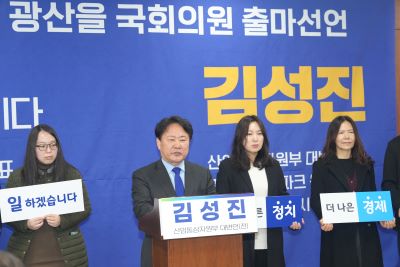 김 전 대변인은 \"경제가 복지\"라며 \"산자부 등에서 30년 넘게 쌓은 경험과 네트워크를 기반 삼아 광산과 광주의 산업에 혁신을 불러 일으키고, 기성정치에 물들지 않은 깨끗하고 유능한 패기로 무소의 뿔처럼 일하겠다\"고 포부를 밝혔다.