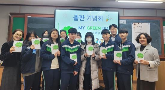 문산중학교 영어 생태 환경 동아리 ‘펀펀 그린 다이어리’가 지난 11일 지난 2년간 기후 활동 경험을 엮은 책 ‘My Green Diary’ (부제: 나의 그린 다이어리: 15살의 환경기록)을 출판했다. /광주시교육청 제공