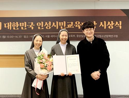 14일 살레시오여고에 따르면 이번 시상식은 교육부와 중앙일보가 공동 주최하고 한국청소년정책연구원이 주관해 이뤄졌다. 학교·가정·사회가 함께하는 실천적 인성시민교육의 활성화를 위해 헌신적으로 일해 온 개인, 기관, 단체, 학교를 발굴해 포상과 격려하는데 목적을 뒀다. 1차 서류 심사와 2차 발표 심사를 거쳐 단체 4곳, 개인 4인의 30일 최종 대상자로 선정됐다.