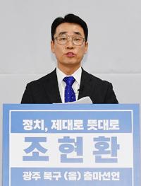 조현환 더불어민주당 동북아평화협력특별위원회 부위원장이 18일 \"윤석열 탄핵, 민주당 혁신, (가칭)호남미래전략공동회의 추진으로 호남의 미래 발전 토대를 구축하겠다\"며 내년 총선 광주 북구을 출마를 공식 선언했다.